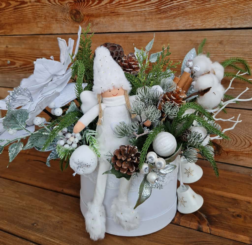 Stroik Świąteczny Bożonarodzeniowy Biały Skrzat