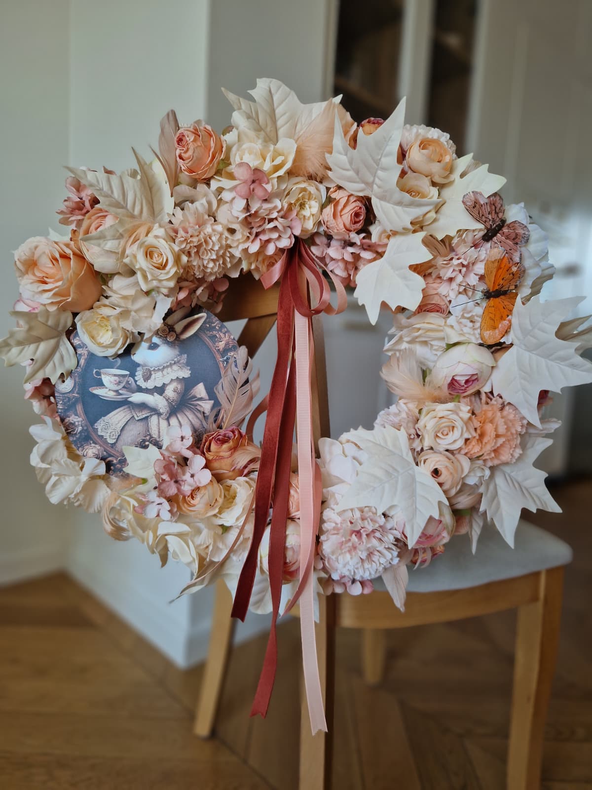 Wianek z suszonych i stabilizowanych kwiatów w kolorze Peach Fuzz