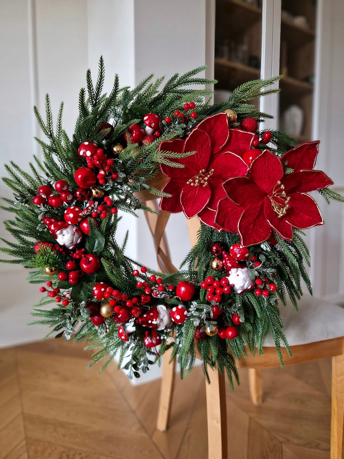 Wieniec świąteczny Bożonarodzeniowy stroik na drzwi duży Czerwony Gwiazda