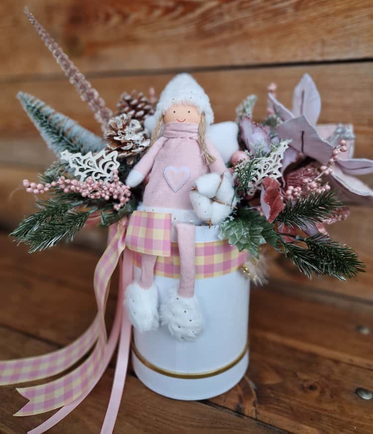Stroik świąteczny bożonarodzeniowy ze świecą Pudrowy Róż