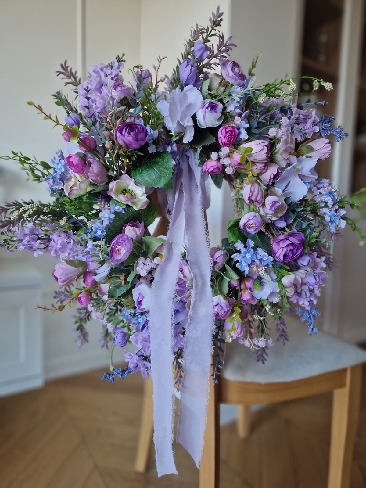 To wianek, który pięknie ozdobi drzwi lub wnętrze, wprowadzając do przestrzeni spokój, elegancję i nutę artystycznej subtelności 💜