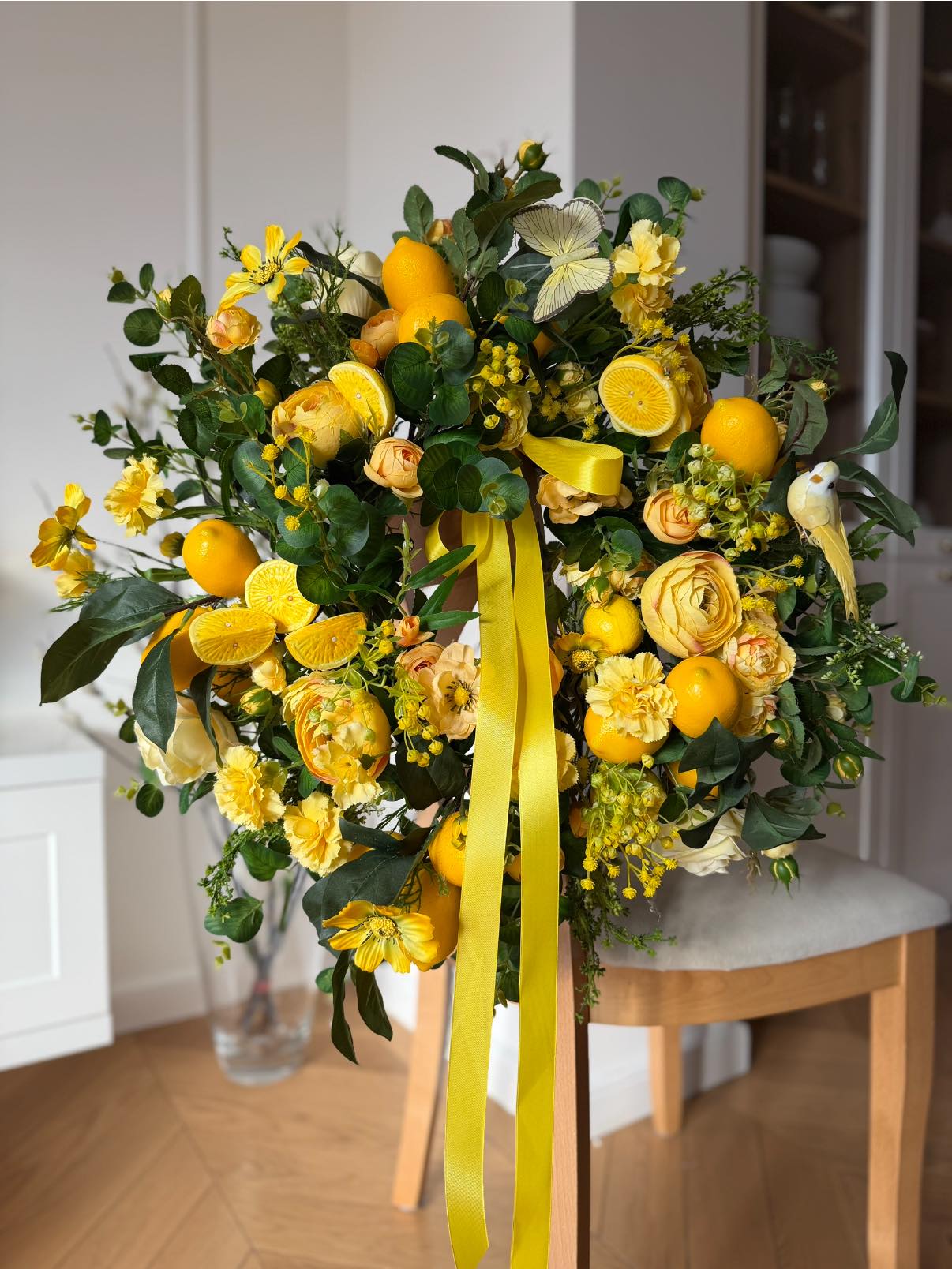 Strona główna » "Bloom Moments" WIANKI, WIANUSZKI, Kompozycje Kwiatowe » Wianki Hand Made » Wianek na drzwi Limoncello Cytryny i Róże
