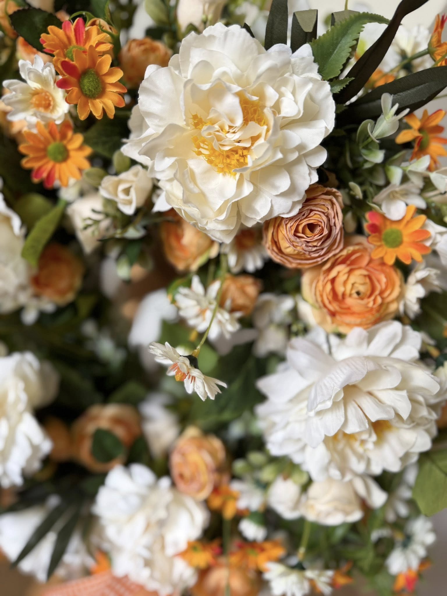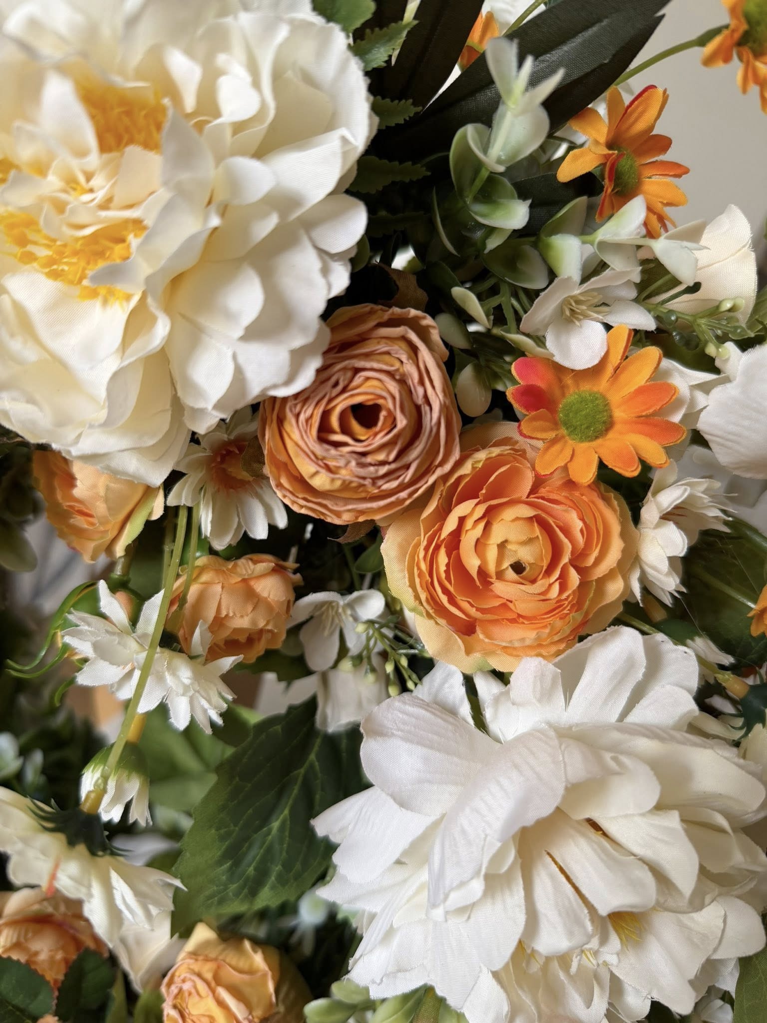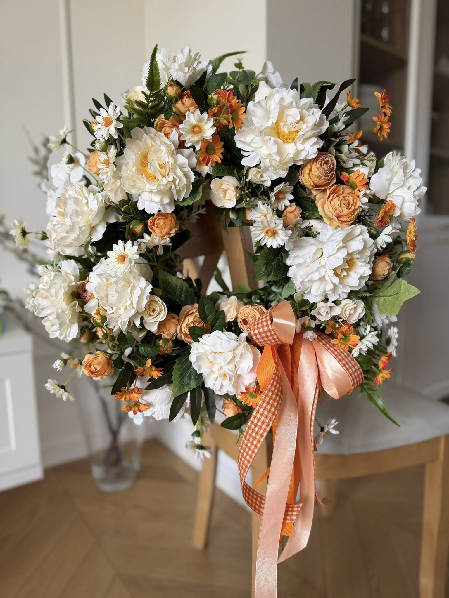 Strona główna » "Bloom Moments" WIANKI, WIANUSZKI, Kompozycje Kwiatowe » Wianki Hand Made » Wianek na drzwi "Melodia Lata" Krem i Pomarańcza 50 cm