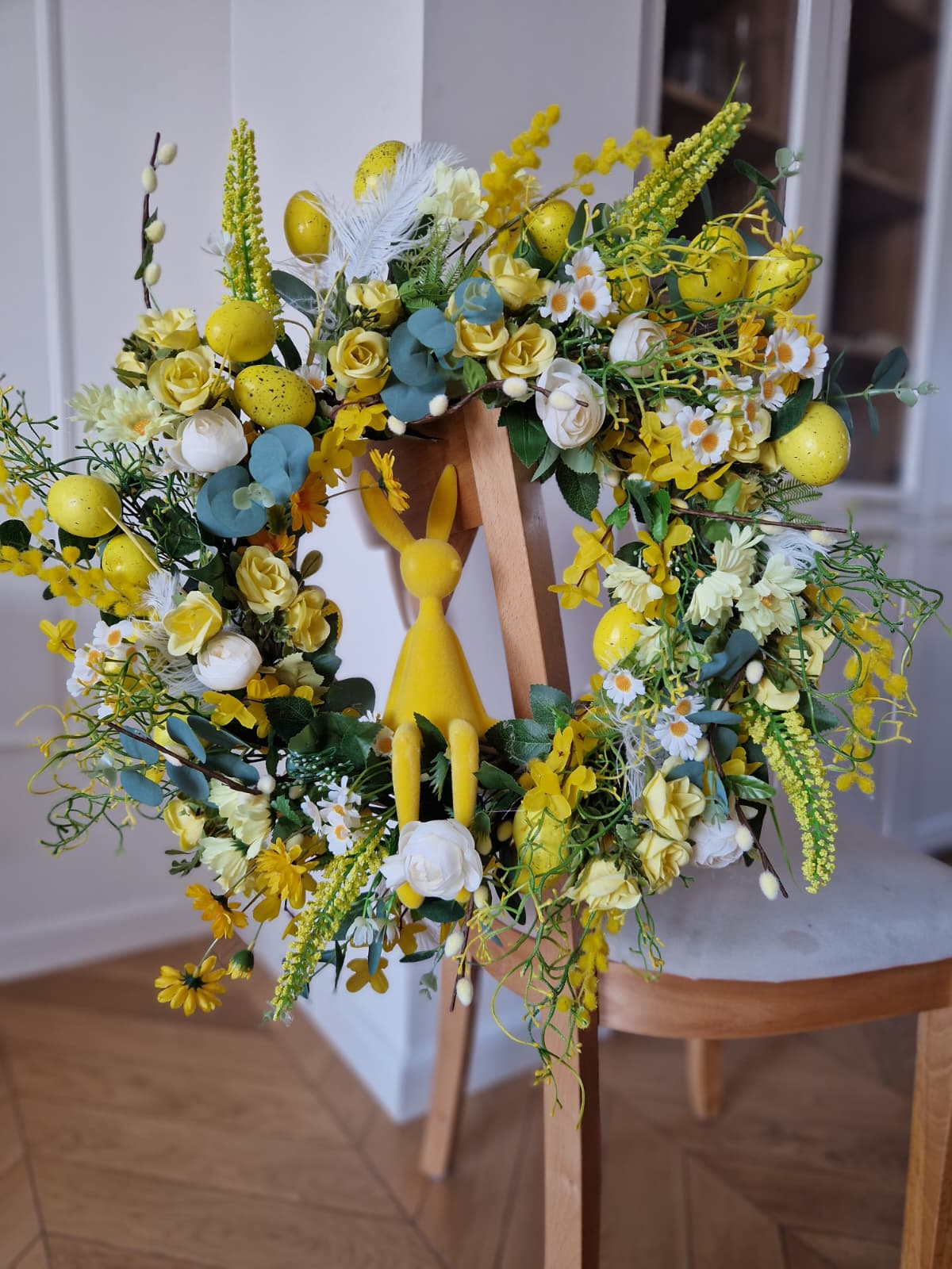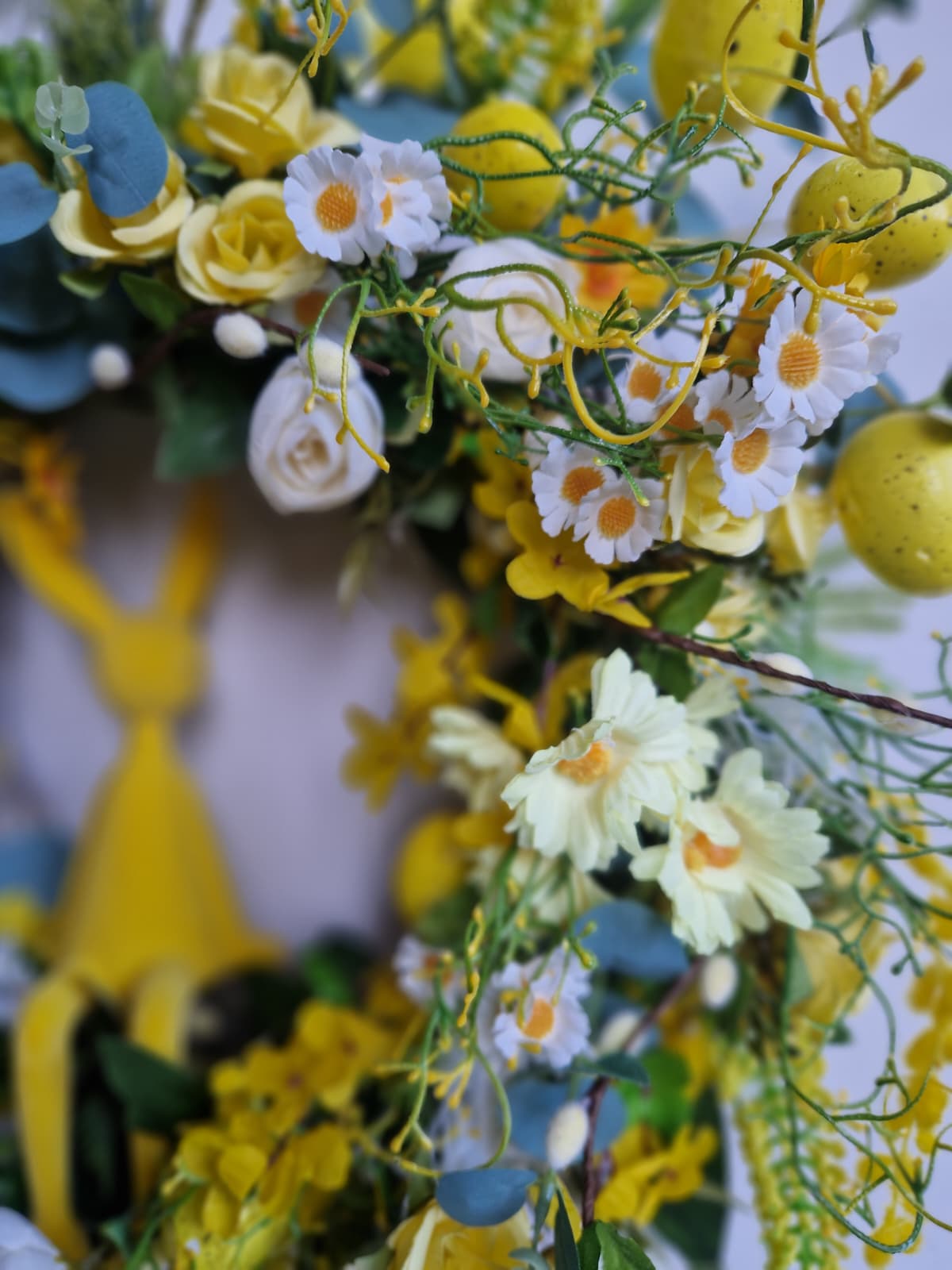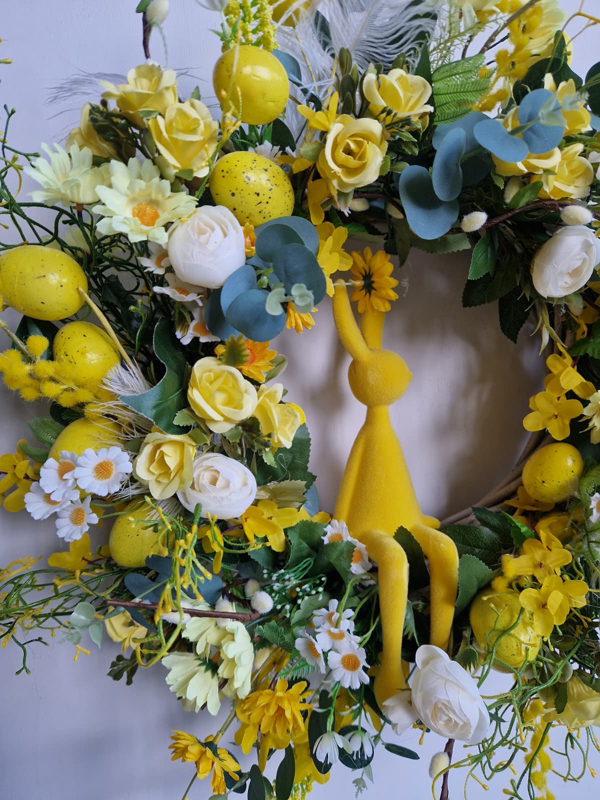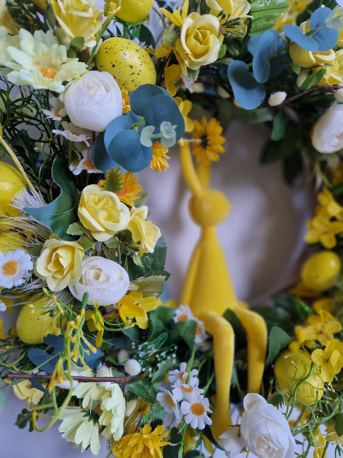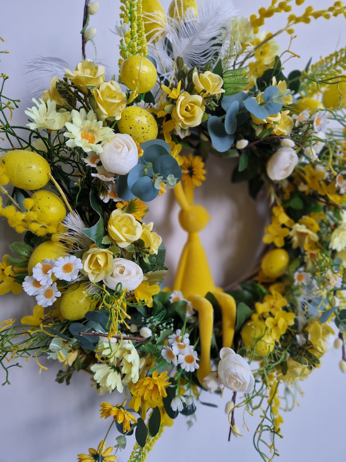 „Słoneczny Zajączek” to radosny, pełen światła wianek wielkanocny, który zachwyca świeżością kolorów i dopracowanymi detalami.