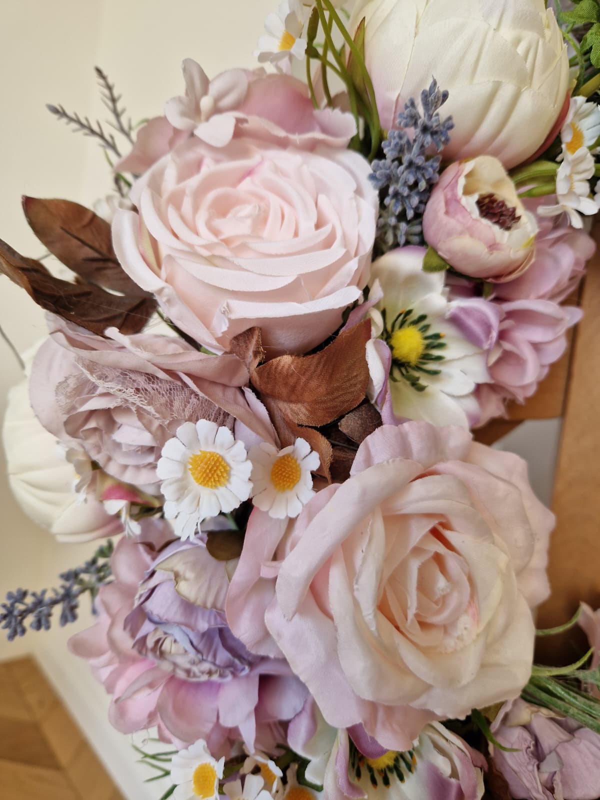Świąteczny wieniec w całości wykonany ręcznie z dbałością o detale, niepowtarzalny wianek wiosenny, wiklinowy, kwiatowy w odcieniach pastelowego fioletu i lawendy. Wianek jest bardzo oryginalny i jedyny w swoim rodzaju, zawieszony na drzwiach wejściowych powita gości serdecznie, a powieszony wewnątrz wniesie do wnętrza odrobinę klimatu Wielkanocnych Świąt.