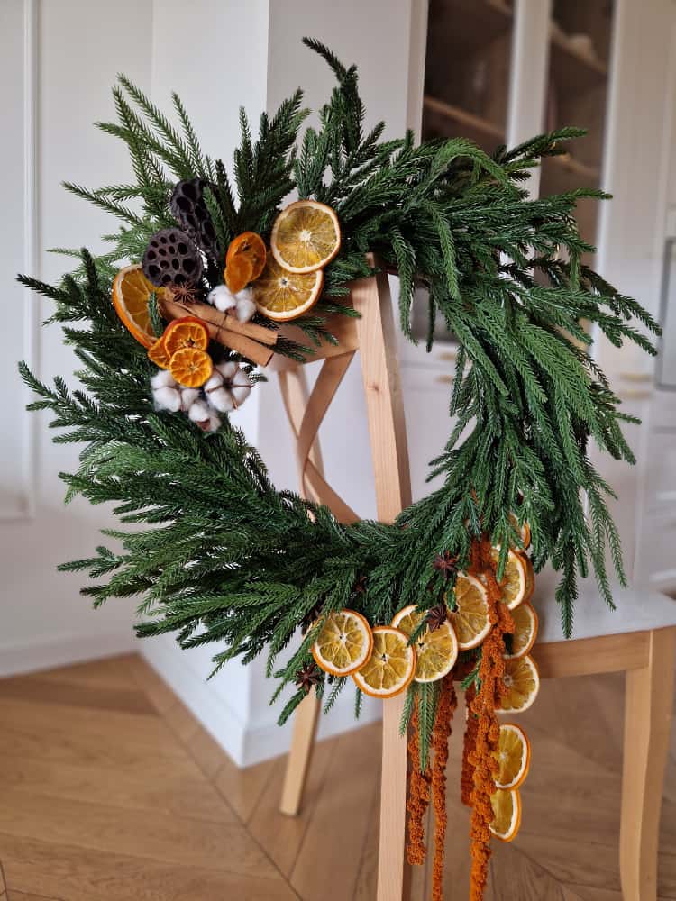 Wieniec zimowy świąteczny Amarantus i Pomarańcze 55 cm