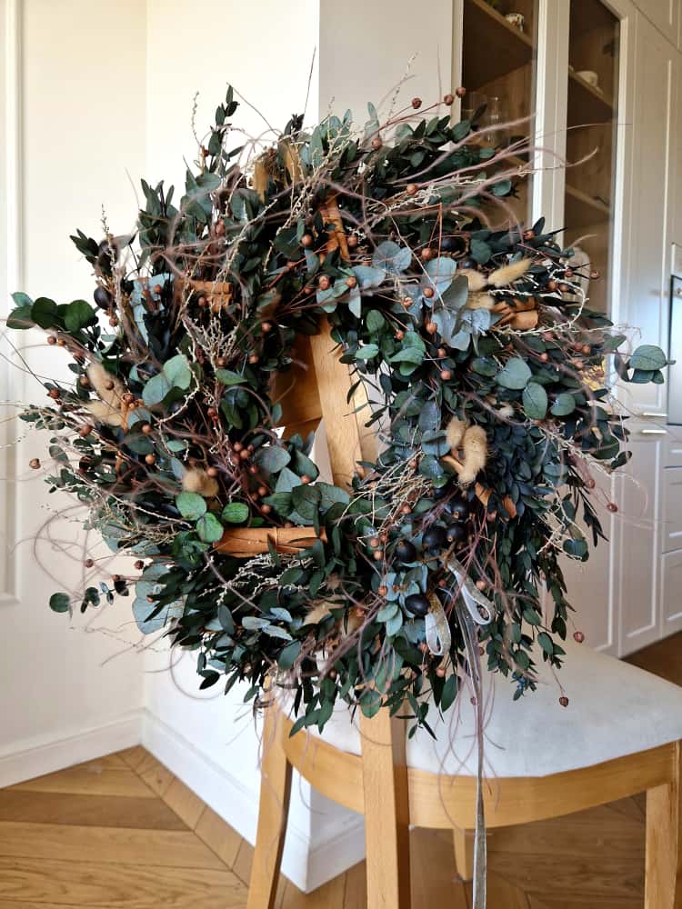 Wianek zimowy, świąteczny naturalny Stabilizowany Eukaliptus
