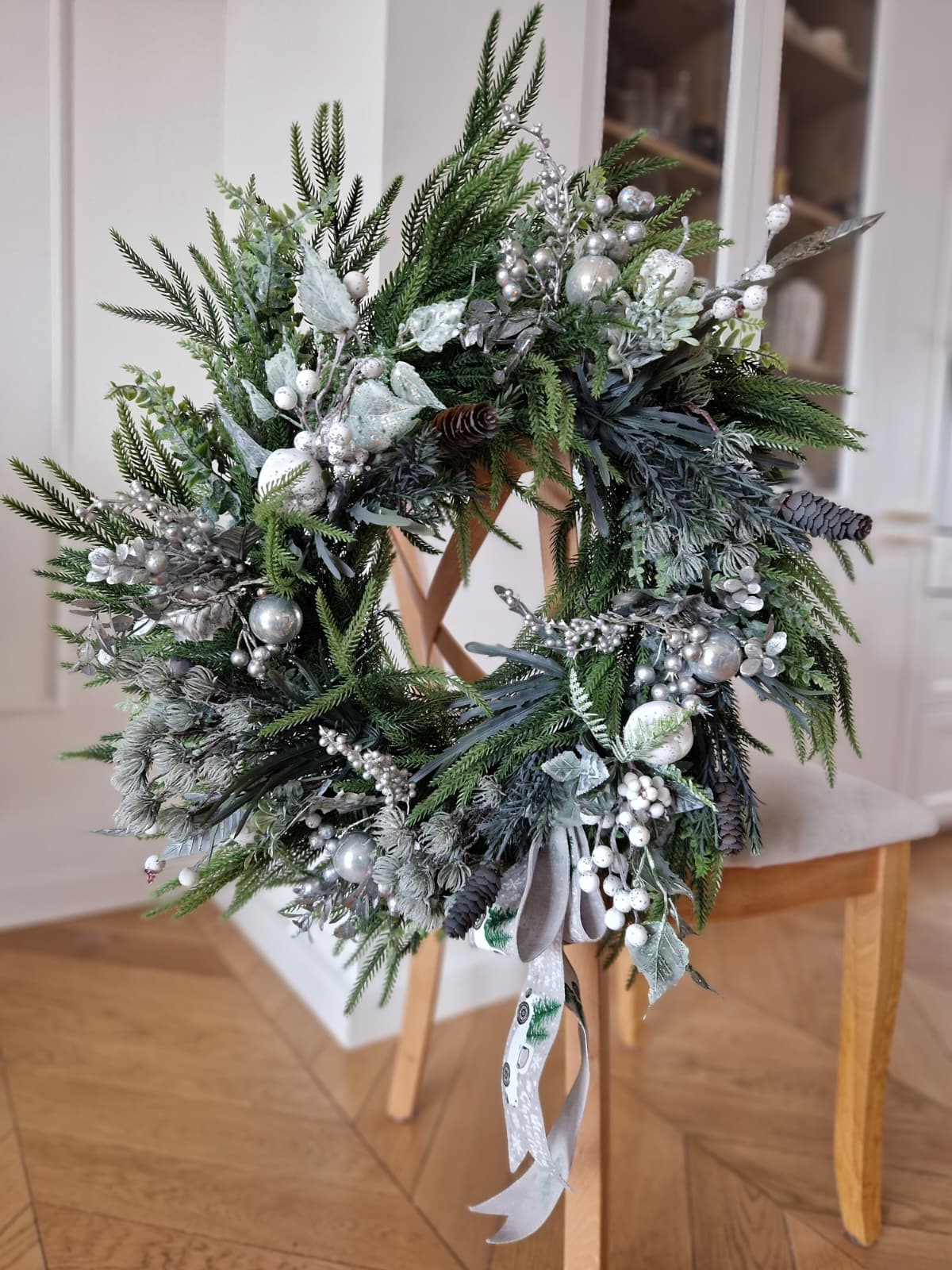 Wieniec zimowy świąteczny Srebrny Blask 55 cm